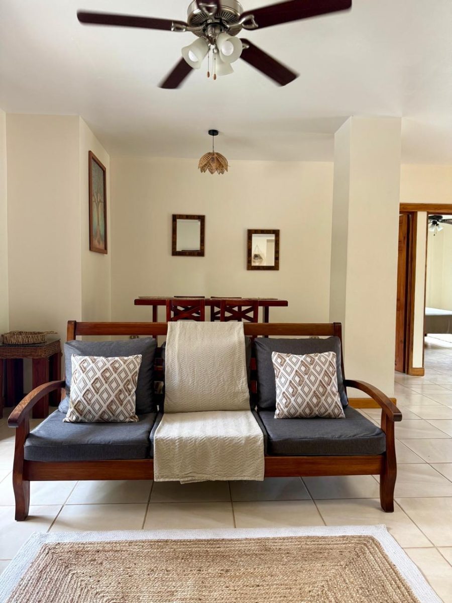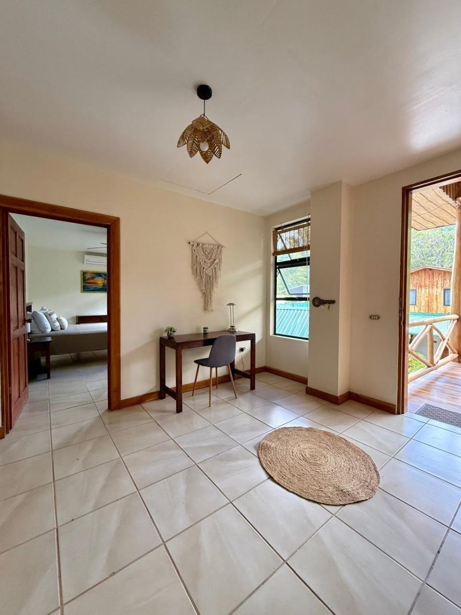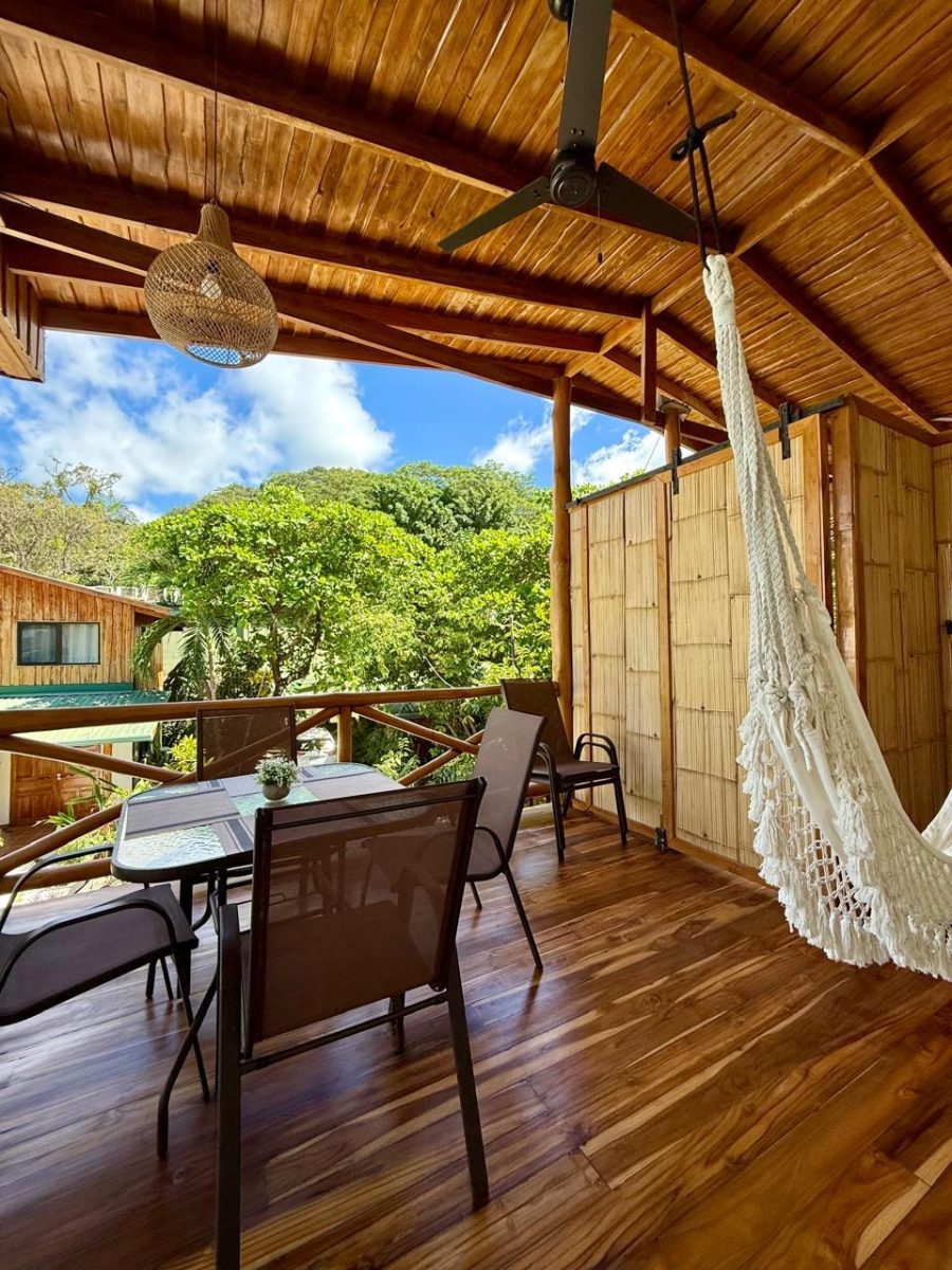 6 people max This two bedroom villa is extremely spacious and comfortable. Perfect for 2-3 couples and plenty of room for a family. On the private patio in the back you can relax on a hammock among the Almendro trees. From the balconies in the front you can watch the town of Santa Teresa stroll about. Villa Almendro offers 1 Queen-size bed in one bedroom and 2 full-size beds in the other bedroom.